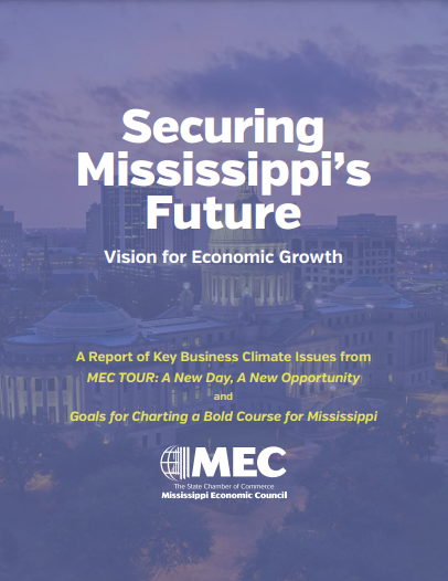 With information compiled from its annual statewide tour, the Mississippi Economic Council’s (MEC) “Securing Mississippi’s Future: Vision for Economic Growth” report today identified a “lack of qualified workers” as the number one concern of businesses across Mississippi. The report incorporates findings from 51 focus-group style meetings conducted in 18 communities across all regions of Mississippi, an online, quantitative survey, and other research.